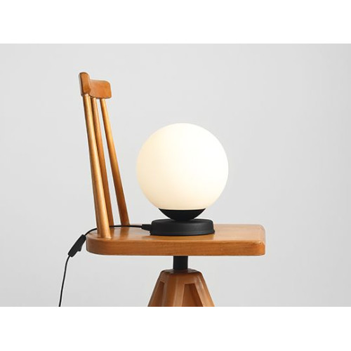 Stylish table lamp from the series Ball, made of a black colour round metal base and a matt white gl..