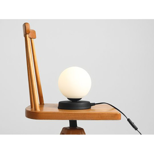 Stylish table lamp from the series Ball, made of a black colour round metal base and a matt white gl..