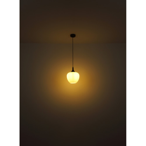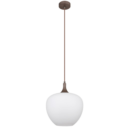 Elegant pendant lamp with a modern design from the series Maxy, made of a brown colour metal base and dome-shaped glass shade in a opal colour. An original solution for interior lighting in your living room, dining room, hotel and restaurant.