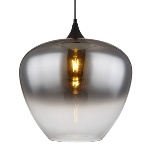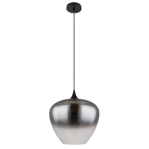 Elegant pendant lamp with a modern design from the series Maxy, made of a black colour metal base and dome-shaped glass shade in a smoked colour that fades to transparent. An original solution for interior lighting in your living room, dining room, hotel and restaurant.