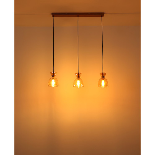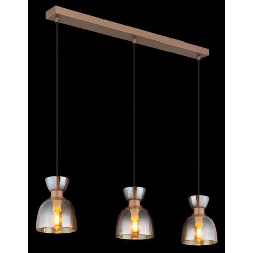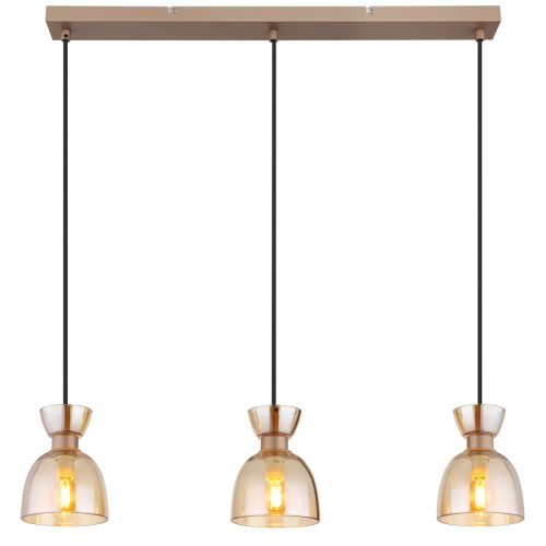 Elegant pendant lamp from the series Massey, made of matt coffee colour metal base and three amber glass shades. Modern solution for the interior lighting of your living room, dining room, hotel and restaurant.