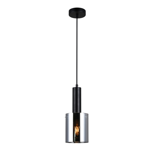 Elegant pendant lamp with a contemporary design from the series Sardo, made of black colour round steel base and smoked glass shade in a cylindrical shape with black decorative element. An original solution for the interior lighting in your dining room, kitchen, bedroom, hallway, hotel and restaurant.