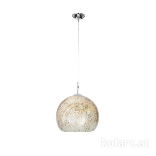 Stylish pendant lamp with original design, made of chromed round metal base gold and silver glass diffuser with handmade decoration. An excellent solution for interior lighting in your living room, dining room, bedroom, hotel and restaurant.