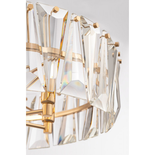 Stylish ceiling lamp from the series Mantle, made of matt brass colour metal base and frame with pri..