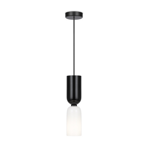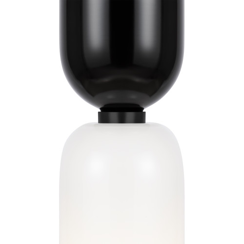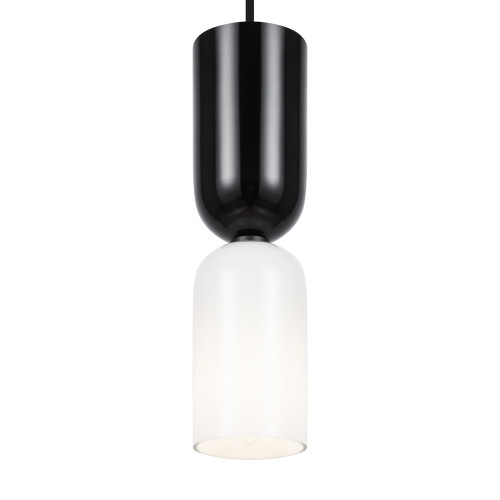 Stylish pendant lamp from the series Memory, made of a black colour metal base and an attractive hourglass-shaped diffuser made of black and white glass. Modern solution for interior lighting in your living room, dining room, bedroom, hotel and restaurant.