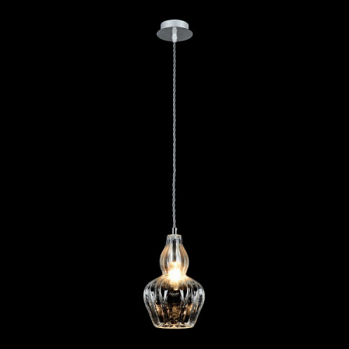 Elegant pendant lamp with interesting design made of chromed metal base and transparent glass diffuser, which will perform with a stylish atmosphere and pleasant light your dining room, bedroom, kitchen, hallway, hotel or restaurant.