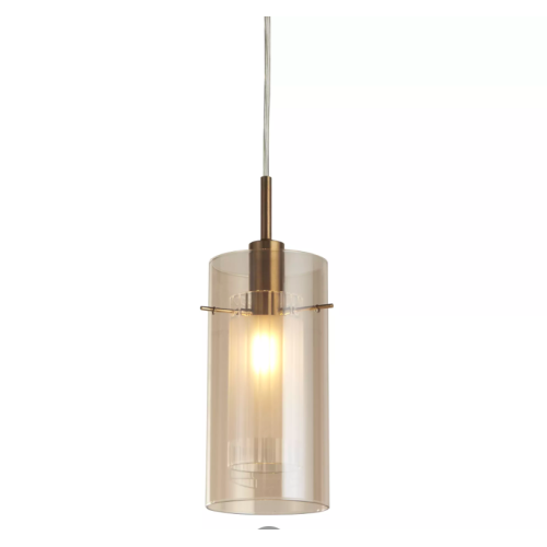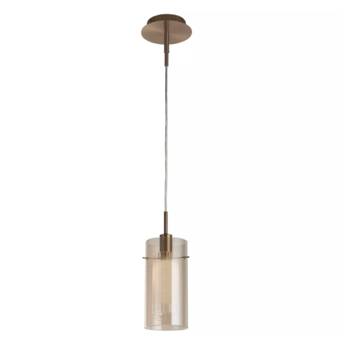 Stylish and modern pendant lamp from series Duo 3, made of bronze colour metal base and champagne colour cylindric glass diffuser at socket E14. Pendant lamp, suitable for your living room, dining room or restaurant.