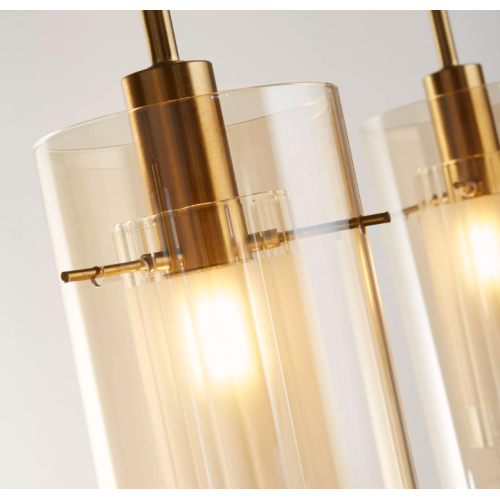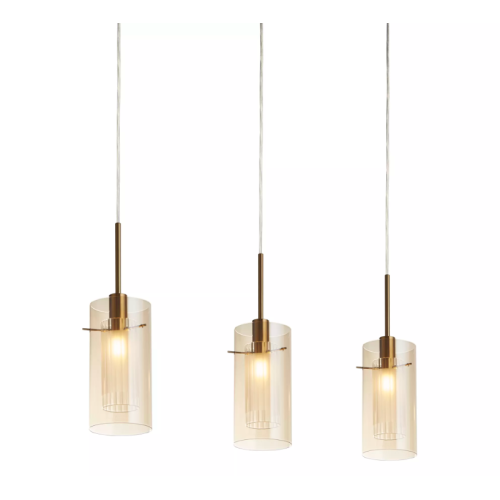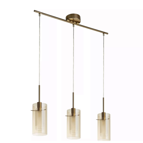 Stylish and modern pendant lamp from series Duo 3, made of bronze colour metal base and three champagne colour cylindric glass diffusers at socket E14. Pendant lamp, suitable for your living room, dining room or restaurant.