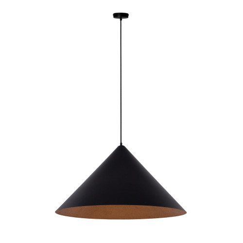 Elegant pendant lamp from the series Vesuvio, made of a black colour round steel base and a conical-shaped shade of mineral composite in black colour on the outside and copper colour on the inside. Modern hanging lamp that will fill with comfort and soft light your living room, dining room, bedroom, hotel and restaurant.