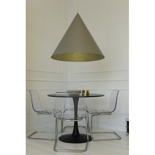Elegant pendant lamp from the series Vesuvio, made of a taupe colour round steel base and a conical-..