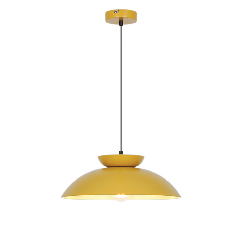 Modern pendant lamp from the series Superb, made of a round base and an elegant metal shade in yellowcolour on the outside and white on the inside. An original proposal for the interior lighting of your living room, dining room, bedroom, hotel and restaurant.