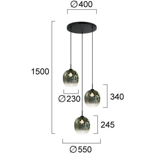 Dimensions: Height: 1500mm, Diameter: 550mm, Diameter of the shades: 230mm