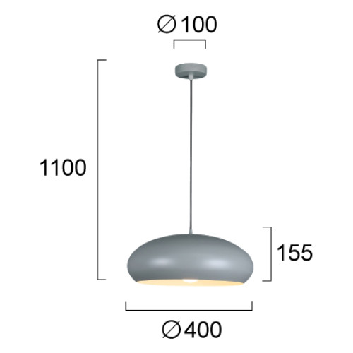 Modern pendant lamp from the series Cozy, made of a round metal base and a dome-shaped metal shade in grey colour. An original proposal for the interior lighting of your living room, dining room, bedroom, hotel and restaurant.