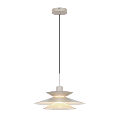 Original pendant lamp with a modern design from the series Stevi, made of a beige colour metal base and a conical metal shade on three levels in beige colour on the outside and white on the inside. Stylish offer for comfortable lighting in your living room, dining room, bedroom, hotel and restaurant.