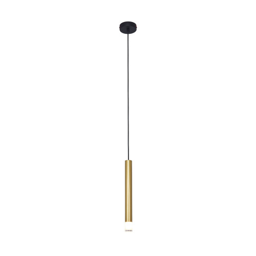 Elegant pendant lamp with a modern design from the series Velic, made of a black colour round metal base and cylindrical metal body in gold colour with plastic diffuser. A great idea for the interior lighting of your living room, dining room, hotel and restaurant.