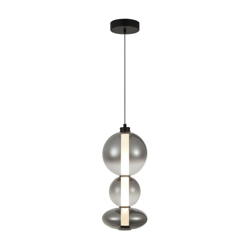 Stylish LED pendant lamp from the series Sonte, made of matt black colour metal base and vertical hanging body of glass spheres in smoky colour with built-in 24W, 3000K LED. A modern proposal for lighting your living room, dining room, hotel, office or restaurant.