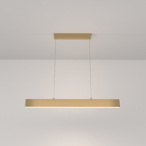 Modern LED pendant lamp with an elegant design from the series Step, made of a gold colour metal base and a rectangular shape metal body with white plastic diffuser, built-in 23W, 4000K LED and two-sided light dispersion. Stylish lamp, that will fill with excellent light and a unique atmosphere your living room, dining room, hotel or restaurant.