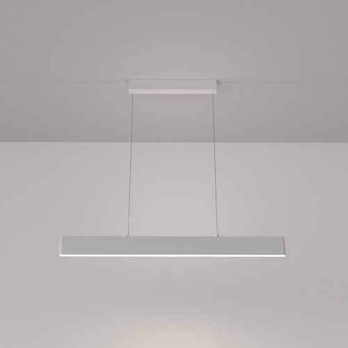 Modern LED pendant lamp with an elegant design from the series Step, made of a white colour metal base and a rectangular shape metal body with white plastic diffuser, built-in 23W, 4000K LED and two-sided light dispersion. Stylish lamp, that will fill with excellent light and a unique atmosphere your living room, dining room, hotel or restaurant.