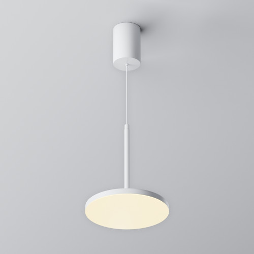 Modern LED pendant lamp from the series Plato, made of white colour aluminium base and round flat aluminium body with built-in 12W, 3000K LED and light scattering angle: 120°. Stylish lamp with original design, suitable for lighting in your modern home, office, hotel and restaurant.