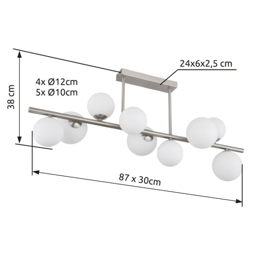 Dimensions: Height: 380mm, Length: 870mm, Width: 300mm, Diameter of the shades: 4 х 120mm, 5 х 100mm