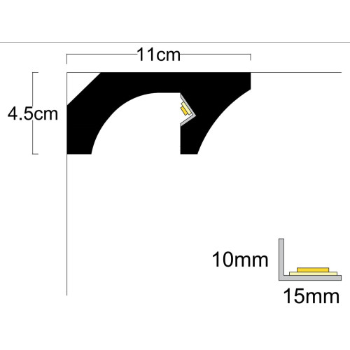 Aluminium 90 degree shape profile for LED strip, which is mount inside of the extruded polystyrene f..