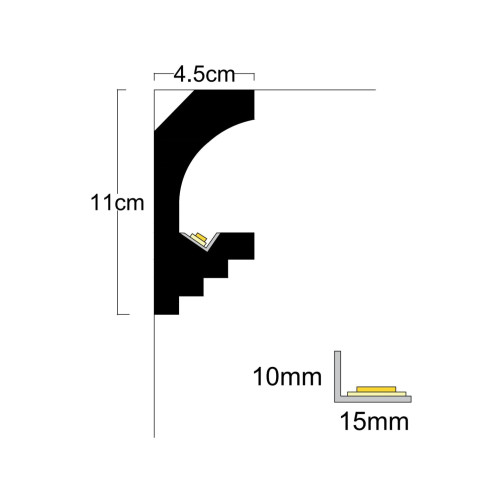 The LD-01.3 LED lighting profile creates an extraordinary and innovative effect in the interior. It is made from XPS (fiber) or so-called extruded polystyrene foam. When clogging the XPS, a homogeneous foam is produced with microscopic closed air pockets, making it very light, sturdy and waterproof and very convenient for installation. There are several requirements for the installation: mounting on the wall is done with mounting adhesive (without solvent); plaster with gypsum glue between two profiles (about 5 cm); painting is mandatory - using water based paint or latex paint. It is recommended to mount an L-shaped aluminum profile in the channel in advance, the price being: 3.50 EUR. VAT / for 2 meters. The hidden lighting profile is available in 2m. , and the price on the site is for 2m. No LED bar included. The profile is suitable for lighting in your living room, dining room, bedroom, hotel and restaurant.