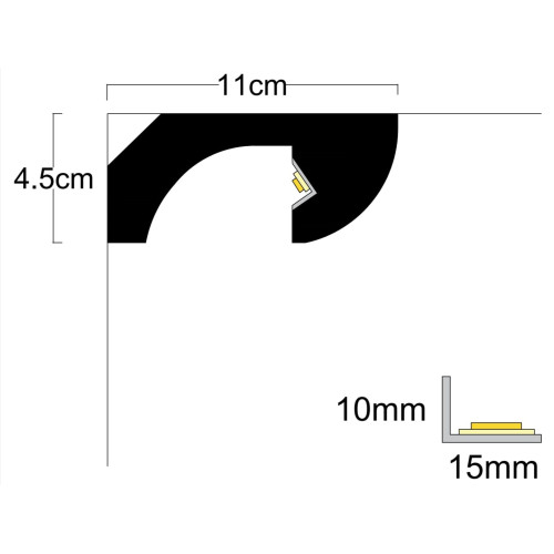 Aluminium 90 degree shape profile for LED strip, which is mount inside of the extruded polystyrene f..