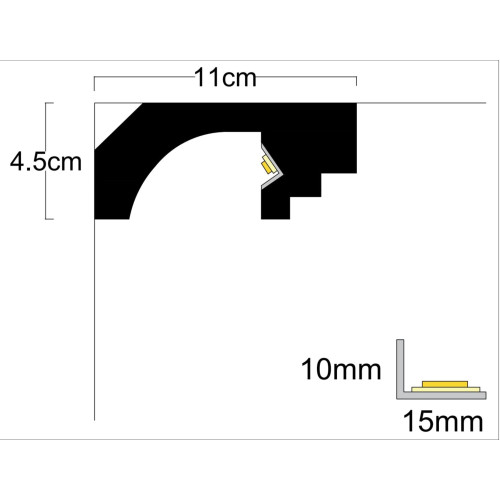The LD-02 TOP LED lighting profile creates an extraordinary and innovative effect in the interior. It is made from XPS (fiber) or so-called extruded polystyrene foam. When clogging the XPS, a homogeneous foam is produced with microscopic closed air pockets, making it very light, sturdy and waterproof and very convenient for installation. There are several requirements for the installation: mounting on the wall is done with mounting adhesive (without solvent); plaster with gypsum glue between two profiles (about 5 cm); painting is mandatory - using water based paint or latex paint. It is recommended to mount an L-shaped aluminum profile in the channel in advance, the price being: 3.50 EUR. VAT / for 2 meters. The hidden lighting profile is available in 2m. , and the price on the site is for 2m. No LED bar included. The profile is suitable for lighting in your living room, dining room, bedroom, hotel and restaurant.