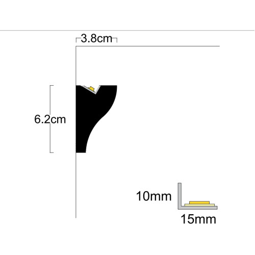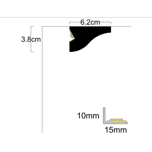 The LD-31.1 LED lighting profile creates an extraordinary and innovative effect in the interior. It is made from XPS (fiber) or so-called extruded polystyrene foam. When clogging the XPS, a homogeneous foam is produced with microscopic closed air pockets, making it very light, sturdy and waterproof and very convenient for installation. There are several requirements for the installation: mounting on the wall is done with mounting adhesive (without solvent); plaster with gypsum glue between two profiles (about 5 cm); painting is mandatory - using water based paint or latex paint. It is recommended to mount an L-shaped aluminum profile in the channel in advance, the price being: 3.50 EUR VAT / for 2 meters. The hidden lighting profile is available in 2m. , and the price on the site is for 2m. No LED bar included. The profile is suitable for lighting in your living room, dining room, bedroom, hotel and restaurant.