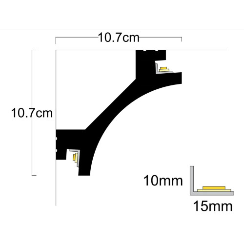 The LD-40 LED lighting profile creates an extraordinary and innovative effect in the interior. It is made from XPS (fiber) or so-called extruded polystyrene foam. When clogging the XPS, a homogeneous foam is produced with microscopic closed air pockets, making it very light, sturdy and waterproof and very convenient for installation. There are several requirements for the installation: mounting on the wall is done with mounting adhesive (without solvent); plaster with gypsum glue between two profiles (about 5 cm); painting is mandatory - using water based paint or latex paint. It is recommended to mount an L-shaped aluminum profile in the channel in advance, the price being: 3.50 EUR VAT / for 2 meters. The hidden lighting profile is available in 2m. , and the price on the site is for 2m. No LED bar included. The profile is suitable for lighting in your living room, dining room, bedroom, hotel and restaurant.