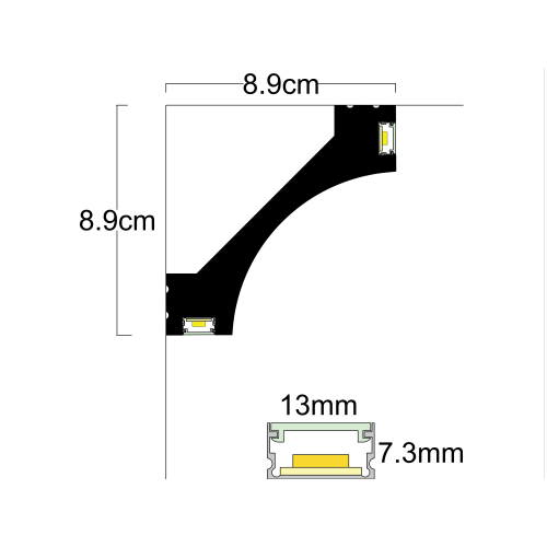 Aluminium 90 degree shape profile for LED strip, which is mount inside of the extruded polystyrene f..