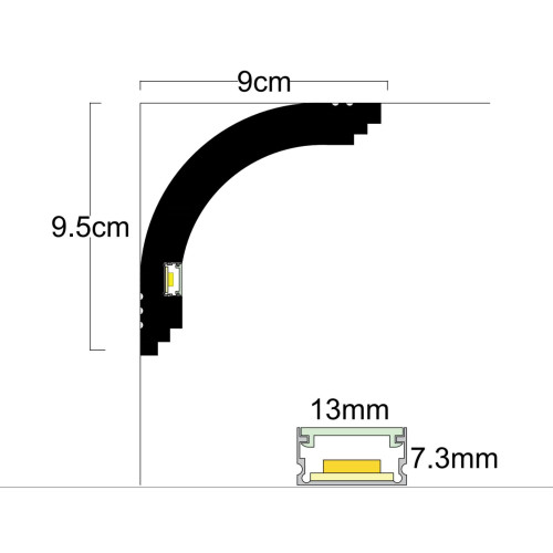 Aluminium 90 degree shape profile for LED strip, which is mount inside of the extruded polystyrene f..