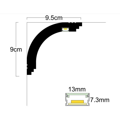 Aluminium 90 degree shape profile for LED strip, which is mount inside of the extruded polystyrene f..
