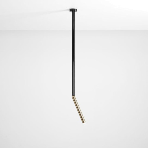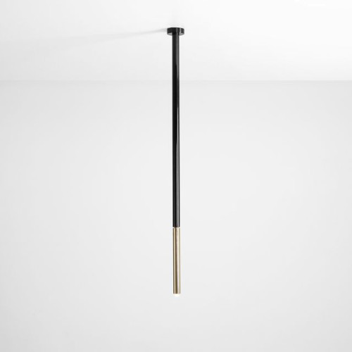 Modern spot lamp with a minimalist design from the series Stick, made of a black colour cylindrical metal body with adjustable head in gold colour on a G9 socket. Functional solution for innovative and comfortable lighting in your living room, dining room, bedroom, hallway, office, hotel and restaurant.