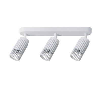 Original spot lamp with a modern design from the series Vertical, made of white colour aluminium base with arms and three adjustable cylindrical heads with a decorative grids on a GU10 socket. Stylish proposal for the modern and functional lighting of your living room, dining room, bedroom, corridor, office, hotel and restaurant.