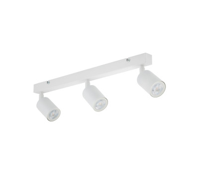 Modern spot lamp with a stylish design from the series Top, made of a rectangular metal base with arms and three adjustable cylindrical metal heads in white colour on a GU10 socket. An original lighting solution in your living room, bedroom, corridor, office, hotel and restaurant.