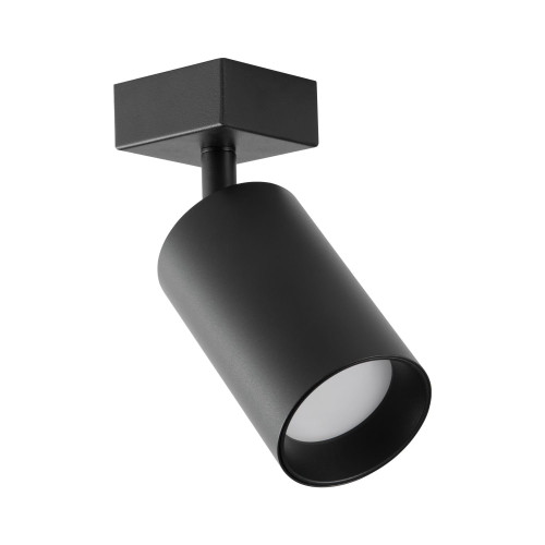 Original spot lamp with a stylish design, made of a black colour square metal base with an arm and a black colour adjustable metal head in a cylindrical shape on a GU10 socket. Modern solution for lighting your living room, dining room, bedroom, hallway, office, hotel or restaurant.