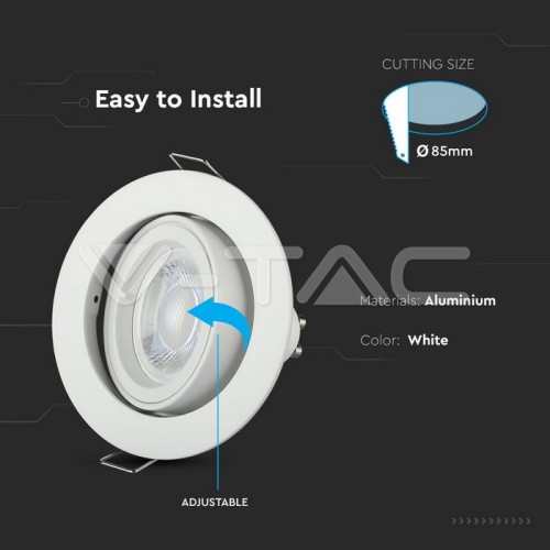 Stylish downlight lamp, made of white colour round aluminium body with adjustable head at socket GU10. Lamp, suitable for your living room, dining room, bedroom, hotel and restaurant.