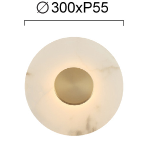 Modern LED wall lamp from the series Allison, made of a gold colour metal base and a body in the shape of a disk of artificial stone, imitating white marble with a built-in 9W, 3000K LED and indirect light distribution. Stylish lamp, suitable for modern and cozy lighting in your living room, dining room, bedroom, hallway, hotel and restaurant.