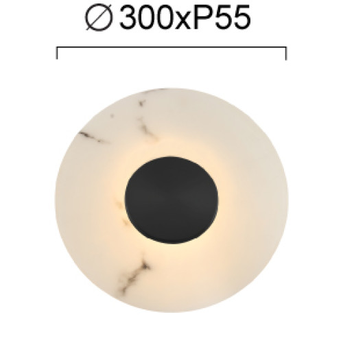 Modern LED wall lamp from the series Allison, made of a black colour metal base and a body in the shape of a disk of artificial stone, imitating white marble with a built-in 9W, 3000K LED and indirect light distribution. Stylish lamp, suitable for modern and cozy lighting in your living room, dining room, bedroom, hallway, hotel and restaurant.
