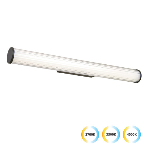 Stylish LED wall lamp from the series Romina, made of black colour aluminium base and cylindrical white polycarbonate diffuser with built-in 15W LED and the ability to choose the colour temperature: 2700K, 3300K or 4000K. Modern lamp with a high degree of ingress protection: IP44, suitable for quality lighting of your bathroom or wet room.