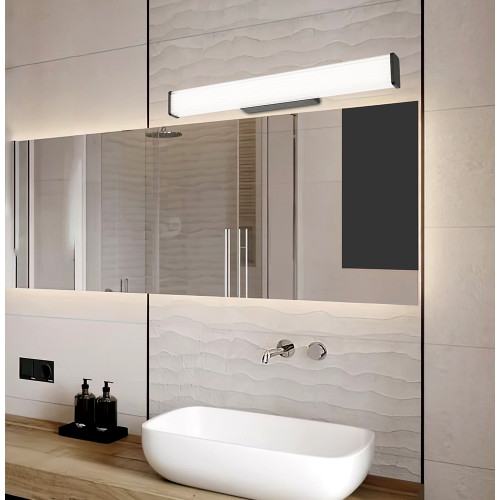 Stylish LED wall lamp from the series Romina, made of black colour aluminium base and rectangular white polycarbonate diffuser with built-in 15W LED and the ability to choose the colour temperature: 2700K, 3300K or 4000K. Modern lamp with a high degree of ingress protection: IP44, suitable for quality lighting of your bathroom or wet room.