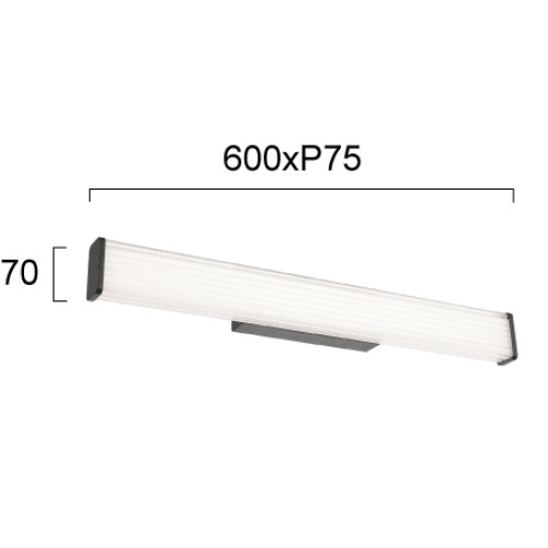 Dimensions: Height: 70mm, Length: 600mm, Distance from the wall: 75mm