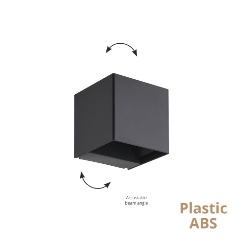 Stylish LED facade wall lamp with a functional design from the series Greg, made of dark grey colour square plastic body, illuminated from both sides up and down with an adjustable light beam angle of up to 100°. Lamp with a high degree of ingress protection: IP65, suitable for outdoor lighting on any facade, porch or terrace.