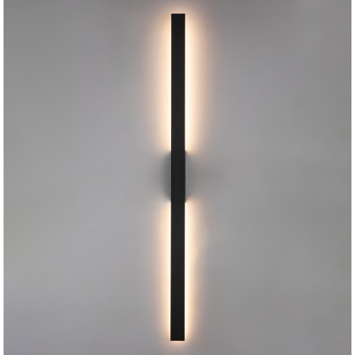 Contemporary LED facade wall lamp from the series Toscana, made of a dark grey colour aluminium base and a long rectangular aluminium body with a polycarbonate diffuser and a built-in 18W, 3000K LED with indirect light distribution. Stylish lamp with a high degree of ingress protection: IP65, suitable for comfortable lighting of the facade, entrance door, terrace and veranda in your home, villa, hotel and restaurant.