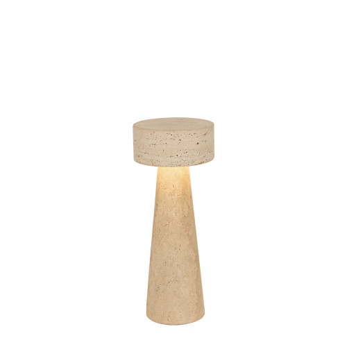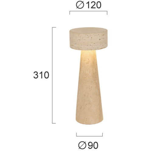 Modern LED table lamp with an original design, made of a beige colour conical base and a cylindrical travertine head with a built-in 7W, 2700K LED. Stylish lamp, suitable for lighting your living room, dining room, bedroom, office, hotel and restaurant.