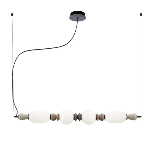 Modern LED pendant lamp from the series Gemma, made of a black colour metal body with original decorative ceramic details in grey and brown colour with opal glass diffusers and a built-in 27W, 3000K LED. Stylish solution for comfortable lighting in your living room, dining room, bedroom, office, hotel or restaurant.