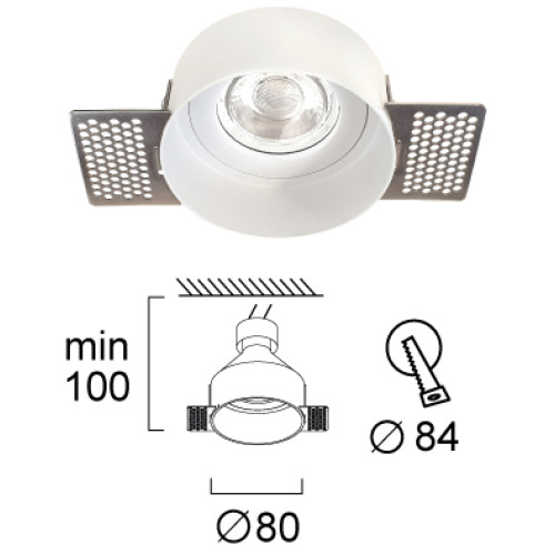 Dimensions: Diameter: 80mm, Depth: 100mm, Recessed diameter: 84mm