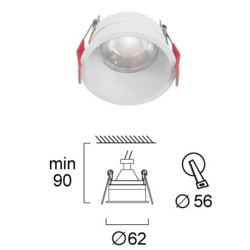 Dimensions: Diameter: 62mm, Depth: 90mm, Recessed diameter: 56mm