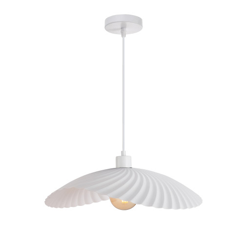 Elegant pendant lamp from the series Dance, made of a round base and an original shape metal shade in white colour. A modern proposal for the interior lighting of your living room, dining room, bedroom, hotel and restaurant.